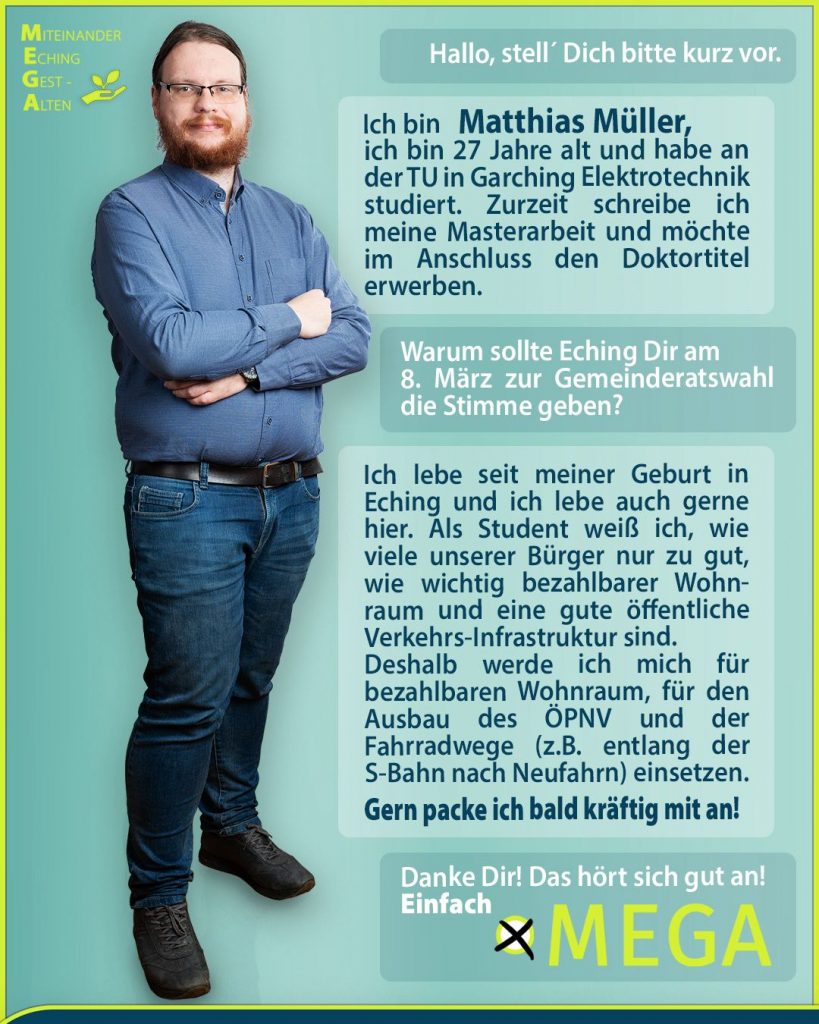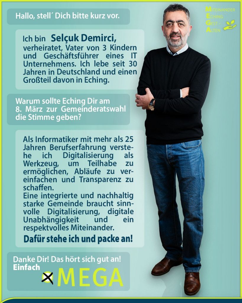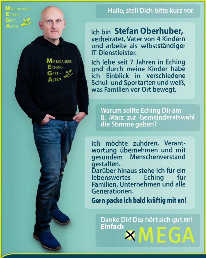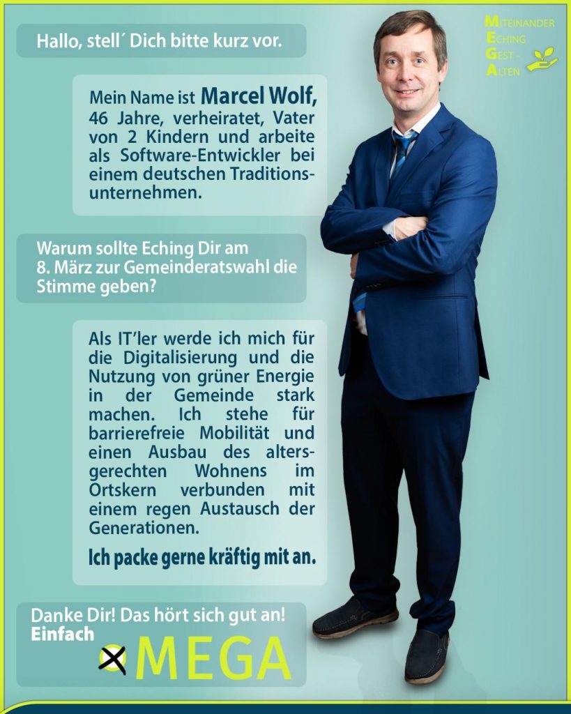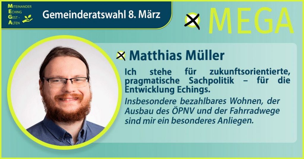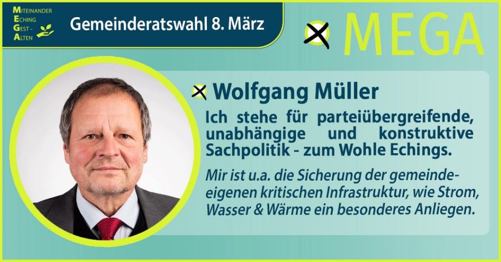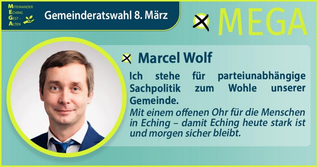 Wir sind eine parteifreie und unabhängige Wählergruppe, die am 8. März 2026 zur Kommunalwahl in Eching antritt. Wir sind Wahlvorschlag Nr. 08 und Sie finden uns ganz rechts auf dem Stimmzettel.