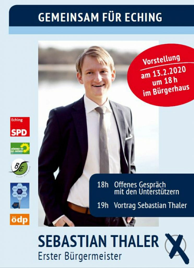 Ich werde auf aktuelle ÖPNV- und Verkehrsthemen in der Gemeinde Eching eingehen und freue mich auf Ihr Kommen!